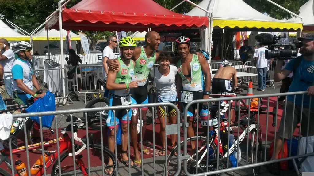 La tortue Franck a fait trembler tous les supporters présents en Martinique et en Guadeloupe à cause de sa chute, sa montre cassée, son vélo plié et son casque cassé juste avant sa transition vélo/course à pied. A travers les sms, Facebook et watsapp tout le monde était derriere notre tortue pour qu’il reprenne ses esprits et qu’il finisse sa course en champion. Il a tenu bon jusqu’à la fin des 113 km et a terminé après 6h1min de course SON 1ER HALF IRON MAN. Tout le monde est fier de notre tortue. BRAVO FINISHER FRANCK SYLVESTRE.