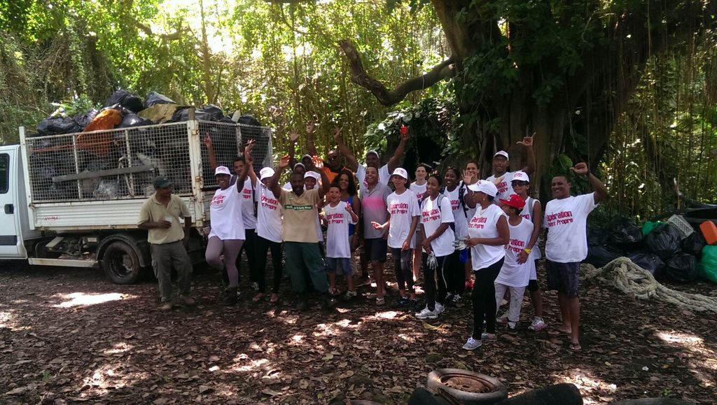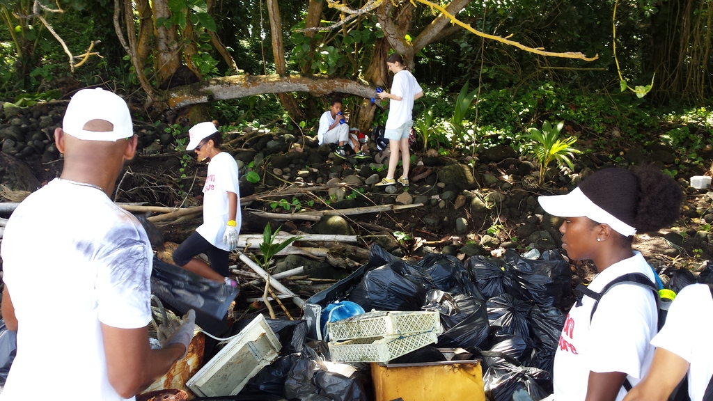 Photos des "tortues" du Kawann Triathlon Club en plein nettoyage à Basse Pointe...