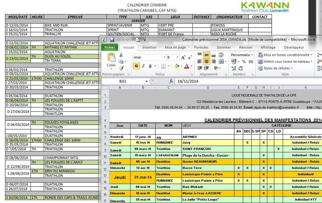 les dates des manif à proximité de la Martinique, les tailles des compétitions, les liens vers les sites. A VOS CALENDRIERS!